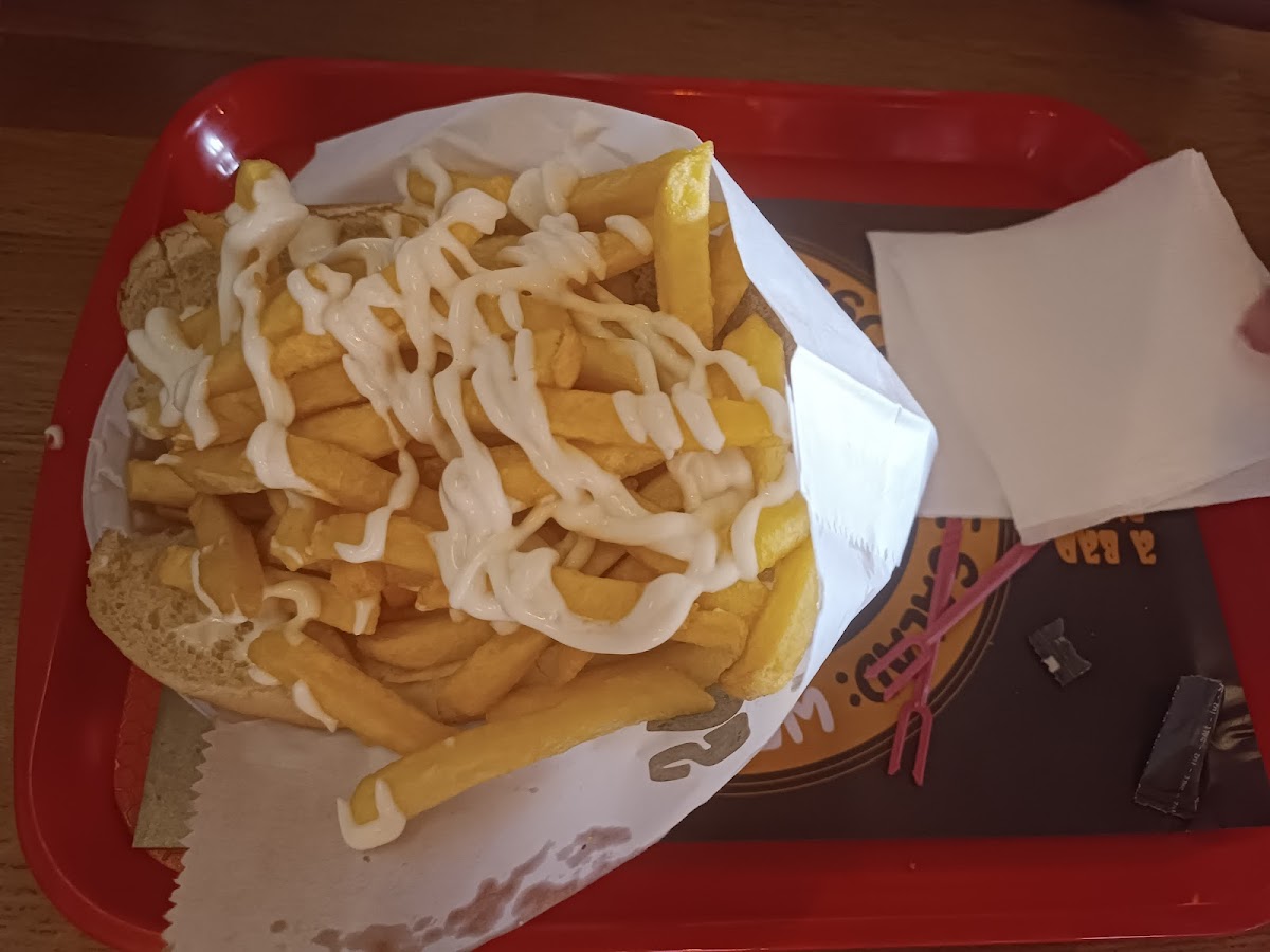 The food was tasty and the ingredients were fresh. We tried the stuffed baked potato where you can choose your own toppings — it was good (4/5), though it might have been our choice of ingredients, as we felt it could use a bit more meat The French fries were very tasty, although they were forgotten at first. The staff were not the most smiley, but everything turned out well and the food was enjoyable. Overall, a nice place with good food. We would recommend it.